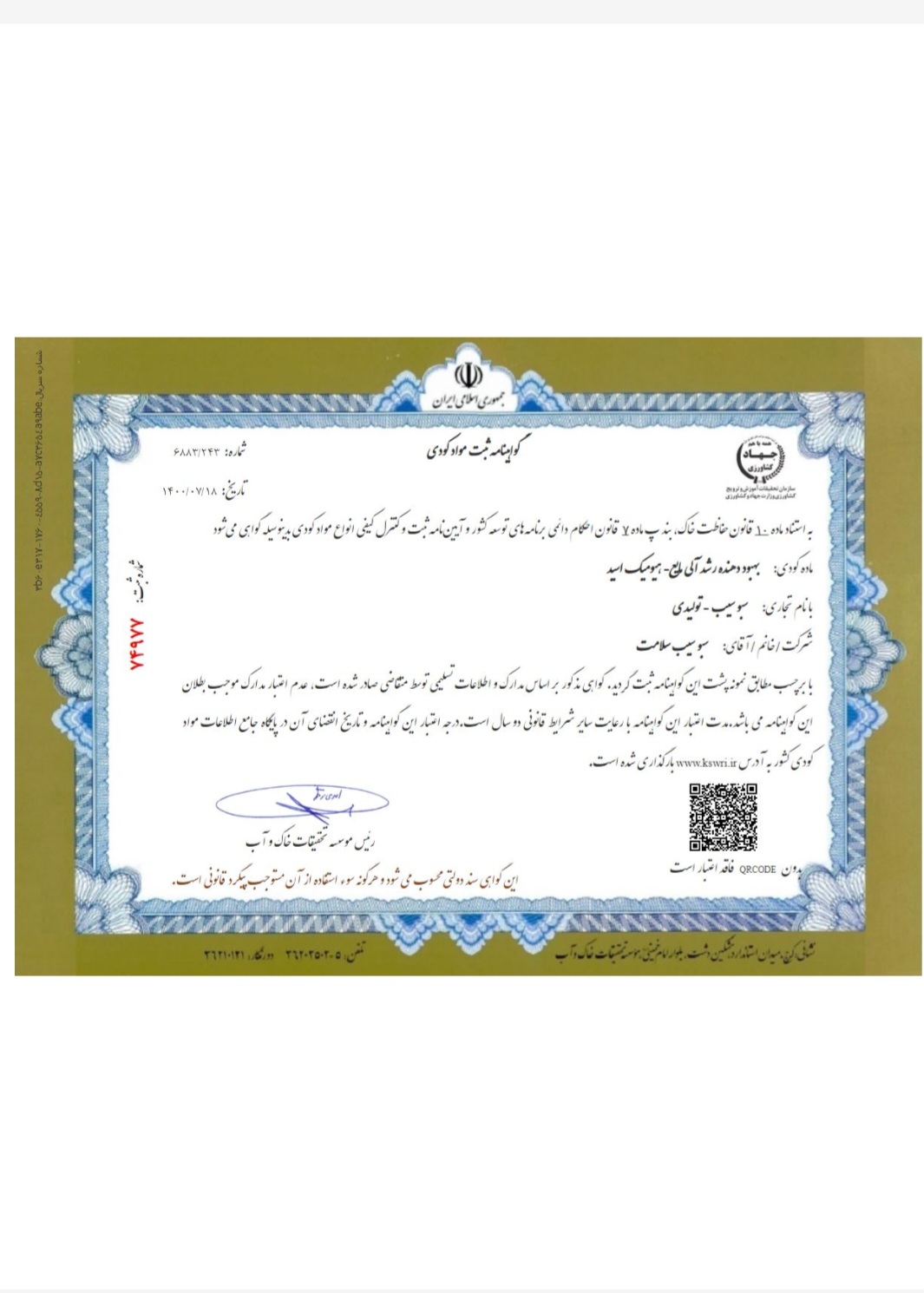 منتخب یکصد برند ارزش آفرین در طی دو سال متوالی ، کسب تندیس بلورین دومین جشنواره ملی صنعت سلامت محور ، کسب نشان ملی مشتری مداری ، منتخب اجلاس چهره های ماندگار صنعت و تجارت ومنتخب اولین پویش ملی گیاهان دارویی کشور از جمله افتخارات این شرکت است
