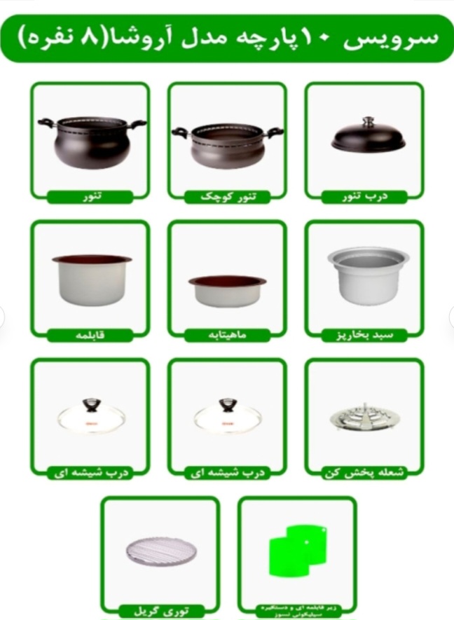 ۱۰ پارچه به همراه یک جفت دستگیره و زیر قابلمه سیلیکونی نسوز (هدیه ناخ)