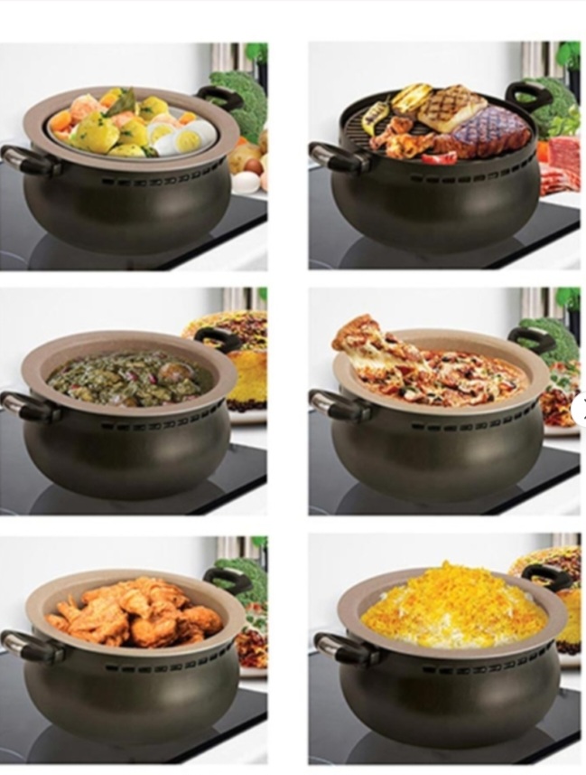 اختراعی بی نظیر شامل مجموعه کاملی از کارایی های تمامی دستگاهها و ظروف پخت و پز آشپزخانه در یک ظرف.